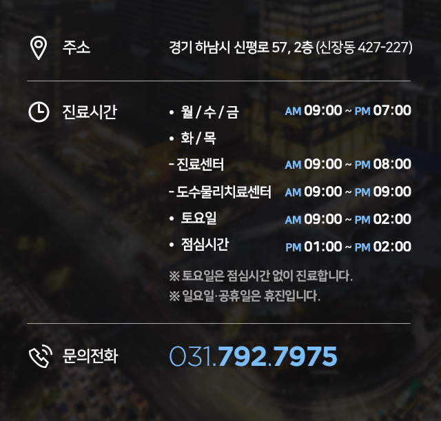 상호명 : 하남재활의학과의원|주소 : 경기 하남시 신평로 57, 2층